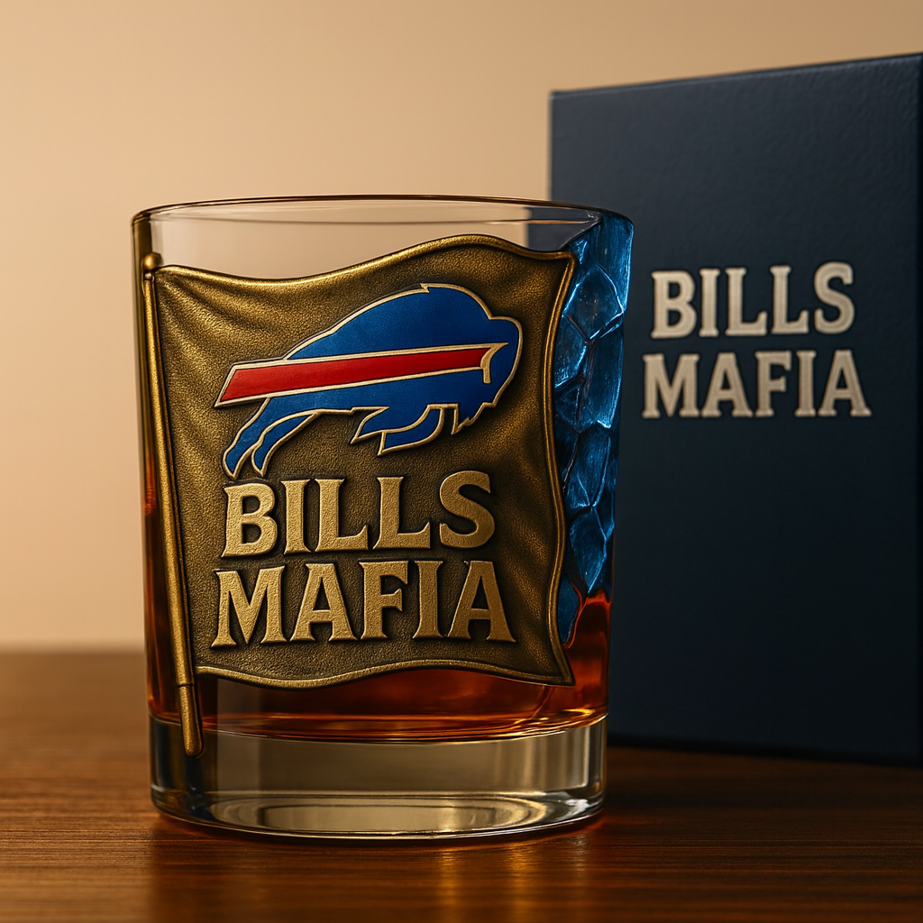 Crafted with high-quality glass and detailed gold accents, this glass is perfect for enjoying your favorite whiskey in style while honoring the passion and resilience of Bills Mafia. 🥃✨