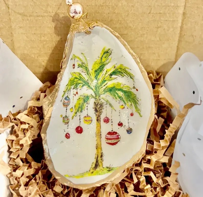 🌴These oyster shell ornaments are the perfect Christmas gift to give in many ways. Embellished with gold wire and gorgeous sparkly beads. Give your Christmas tree that beach theme. or just bring back memories of those golden summer days in the heart of winter.